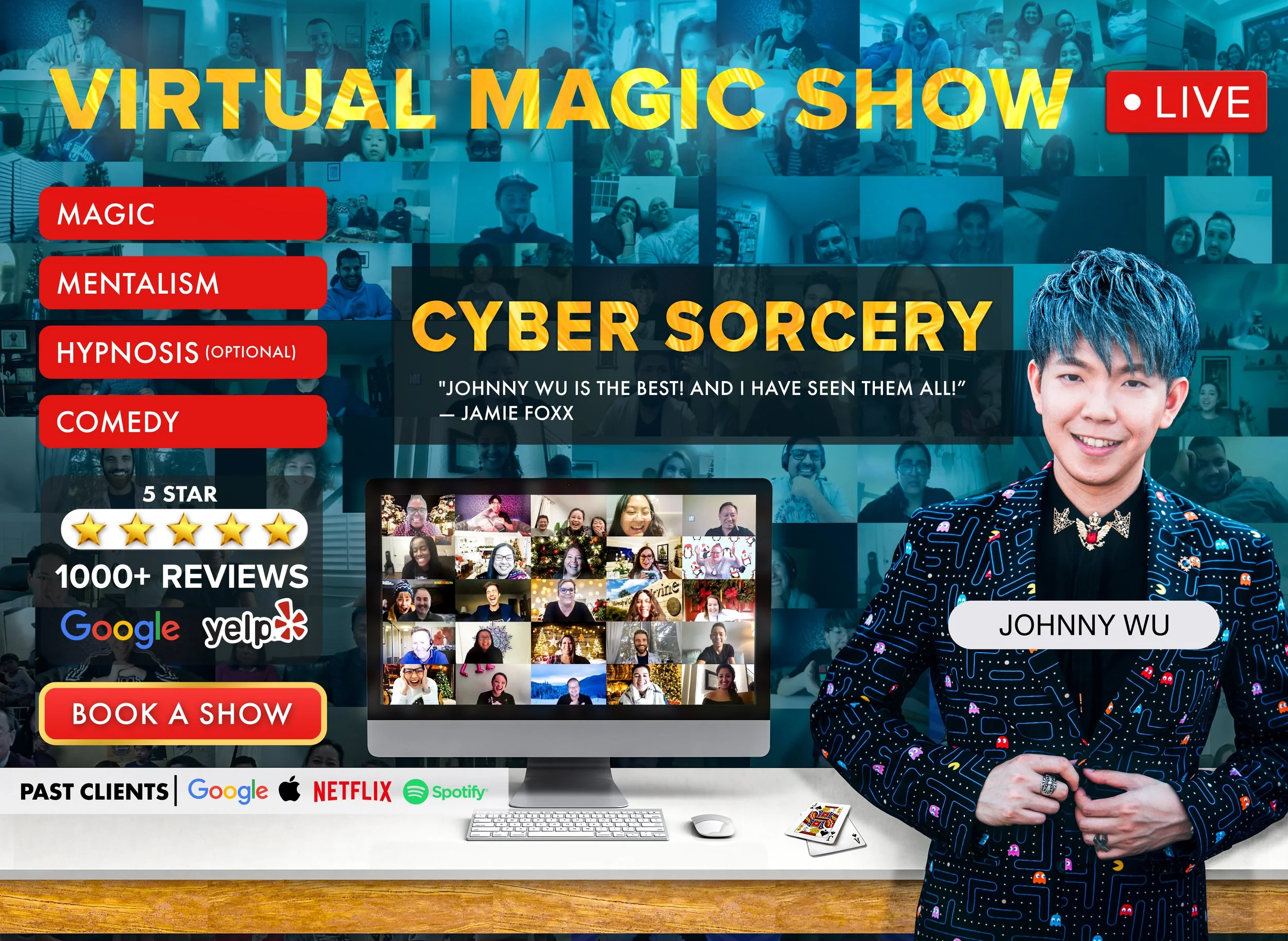 Experience the Same Magic That We Performs for Celebrities Like Jamie Foxx and Jessica Alba, Live, From the Comfort of Your Own Home! Now Virtually Over Zoom!